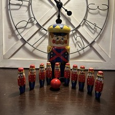 Vintage Handmade Russian Culture Toy Soldier Nesting Doll - Table Bowling 12 Pce