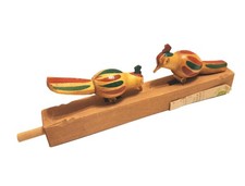 Vintage Hand Carved Hand Painted Wood Russian USSR Bird Shape Whistle Toy