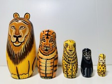 Vintage 5pc Nesting Animals Matryoshka Wood Stacking Handmade Hand painted Toy