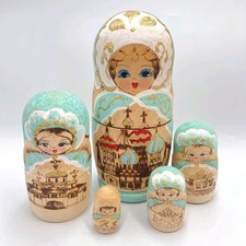 Matryoshka Russian Village Winter Nesting Doll 5-Piece Vintage Wooden Toy