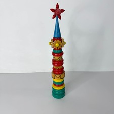 Vintage USSR Russian Clock Tower Children's Wooden Stacking Toy Folk Art 10.50"T