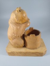 Hand Carved Wood BEAR With Honey Barrel - USSR Russian Folk Art Toy - VINTAGE