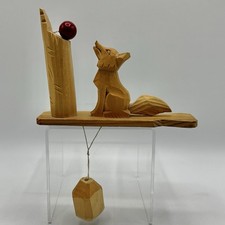 Vintage Russian USSR Wooden Hand Carved The Fox and the Crane Mechanical Toy 7"
