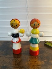 Set Of 2 - VTG 1960s USSR Russian Girl Wood Stack Toy Folk Art Tower