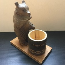 Vintage Russian Wood Toy Backpacking Bear hand Carved