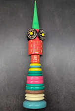 Vintage Russian USSR Soviet Colorful Wooden Clock Tower Stack Children’s Toy 10”