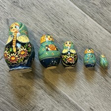 Vintage Wooden Matryoshka Nesting Dolls Set of 5 Hand Painted Folk Art Toy