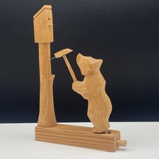 Vintage Russian Carved Wood Bear Toy Automaton 7.5” Hammering Motion Folk Art