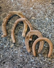 Four 4 Antique Rusty Iron Horse Shoes with Nails and Bits Draft Horse and Others