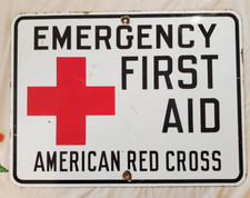 Vintage American Red Cross Emergency First Aid Porcelain Advertising Sign Steel