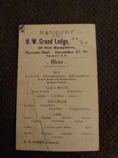 Vintage Dec 27 1899 Masonic Hall Of New Hampshire Menu MW Grand Lodge