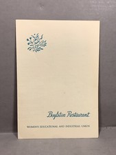 Vintage Women's Educational & Industrial Union Boylston Restaurant Menu Boston