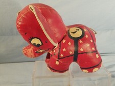 Vintage Antique Leather? Vinyl? SHINERS Stuffed ELEPHANT Toy Red Blue Circus