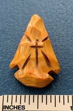 Vintage WOODEN ARROWHEAD Religious Christian PENDANT CHARM Hand Made Carved