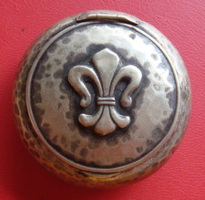 OLD ANTIQUE HANDMADE Boy Scouts Fleur De Lis ALPACCA TRINKET BOX OR PILL BOX