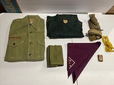 Vintage Boys Scouts Of America Shirt Green Button Up 1950s Lot Of Accessories
