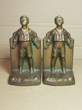 VTG Antique Boy Eagle Scout Figural Bookends Kronheim & Oldenbusch Bronze Tone