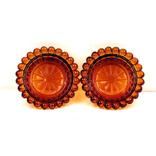Hobnail Amber Coaster Candle Holder Trinket Set of 2 Vintage Mid Century Modern