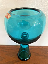 L.E. Smith Handcrafted Blue Art Glass Pedestal Candle Holder MCM Mid Century VTG