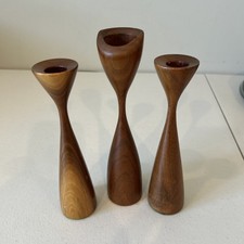 Set of 3 Mid Century Modern Style Wood Candlestick Holders - Danish Influence