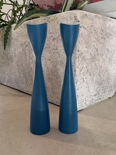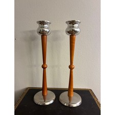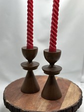 Mid Century Modern 7" Tulip Teak Wood Taper Candle Holders Scandinavian Denmark