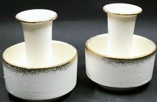 2 Vintage MCM Candle Holders Cream & Gold Trim Mid Century Modern Leewards Japan