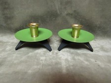 Mid Century Modern Green Black Gold Vogue Spaceship Design Candleholders Pair