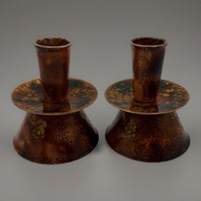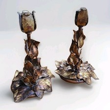 Mid-Century Modern Fall Colored Enamelled Copper Candle Holders