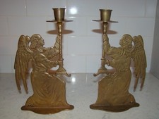 Vintage Set Mid-Century MCM Brass Kneeling Angel Silhouette Candlesticks 10"