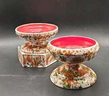 2 Vintage Antique Classic Pink Ceramic Candle holders. Mid-Century MCM