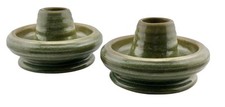 2 Vintage Mid-Century Art Pottery Candle Holders Avocado Green Glaze 4”