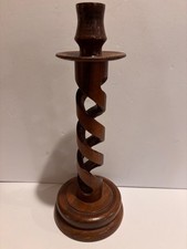 Carved Wooden Twisted Candle Stick Hand Made Mid Century Modern 14”
