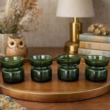 Dansk Vintage Green Glass Candle Holders Set of 4 | Mid Century Modern Danish