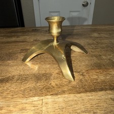 Vintage MCM Atomic Solid Brass Curved 3 Leg Candle Holder - Single - mid century