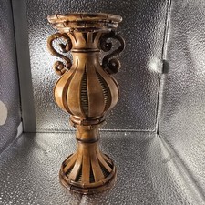 Vintage Rustic Bamboo & Wood Urn Style Pedestal Vase Stand Decorative Candle...
