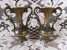 Miniature Brass Vase Set Candle Holders 2 Urn Candlesticks Victorian Decor Vtg