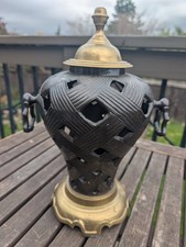 Vtg HEAVY Brass & Cast Iron Two-Tone Lidded Filigree Cut Decorative Urn Candle