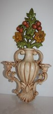 Vintage 1965 Homco Double Candle Wall Sconce Urn with Flowers Mid Century