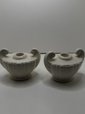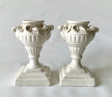 Two Vintage Ceramic Ivory Candle Holders In An Urn Shape H 3” W 4.5”