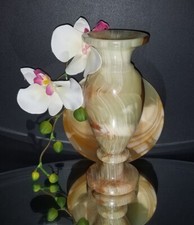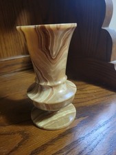 Vintage Brown Agate Carved Stone Vase Urn 6 inch Stunning