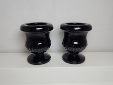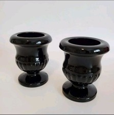 Pair of Vtg Black Glass Candle Holders Miniature Urn Shaped 3" H