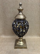 19” Urn Candle Holder Bronze Metal Blue Glass Mosaic & Beaded Dangles