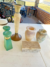 Alabaster Candle Holders, Box and Urns Art Deco MCM ? 6 Pieces Total