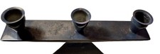 MINIMALIST MODERNIST METAL CANDLE HOLDER, OXIDIZED BLUE-GRAY PATINA, ANGULAR