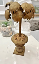 Vintage Tropical Brass Urn Palm Tree Leaves Candle Stick Holders India 1970-1980