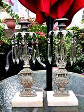 Vintage Crystal Grecian Urn Crystal Candle Stick Holders 8.5" Tapered Set of 2