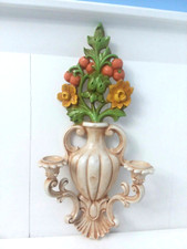 Mid Century Modern Homco Plastic Flower Urn Vase Wall Candle Holder 1965 #4104