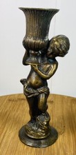 two cherubs holding urn candle stick holder sconce w/ tea column candle holder