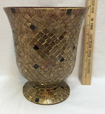 Mosaic Vase Urn Candle Holder Amber Gold w/ Ruby Red Interior Flared Raz Imports