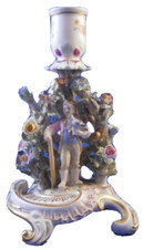 Antique Meissen Porcelain Figural Candlestick Chamberstick Candle Holder Figure